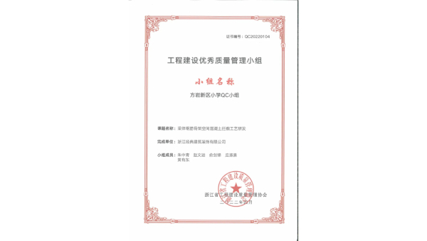 日前,又傳來一個喜訊。由浙江省工程建設(shè)質(zhì)量管理協(xié)會舉辦的“優(yōu)秀質(zhì)量管理小組”評選活動結(jié)果出爐。經(jīng)組委會專家評審,經(jīng)典公司...